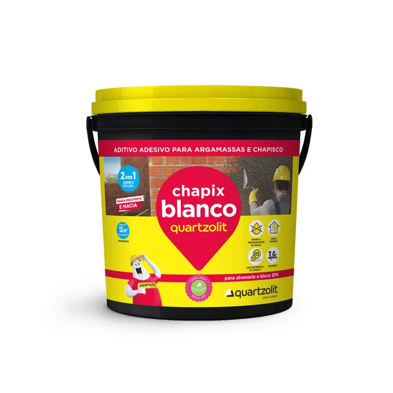 Chapix Quartzolit é um aditivo adesivo à base de PVA, desenvolvido para proporcionar melhor aderência e trabalhabilidade para argamassas e chapiscos cimentícios ao substrato.