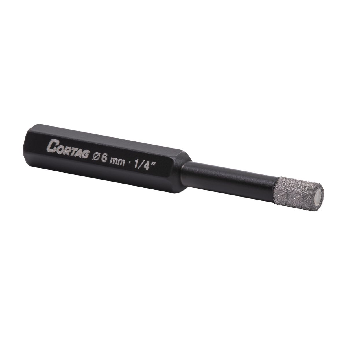 Broca Diamantada Ø 6MM 62128 Cortag é indicada para furar cerâmica, porcelanato, mármore, granito e pedras naturais. Tem maior resistência à abrasão que proporciona maior durabilidade e suporta altas temperaturas e não é necessário refrigerar. A haste é sextavada 8 mm.