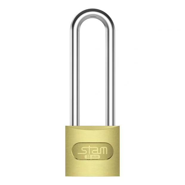 O Cadeado Stam de 35mm com haste longa é a ferramenta de segurança versátil para aplicações que exigem um alcance estendido e maior resistência física. Seu corpo em Zamac maciço oferece peso e densidade ideais para desencorajar tentativas de violação em portões e depósitos.