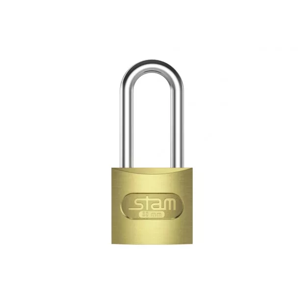 O Cadeado Stam de Haste Média oferece o equilíbrio perfeito entre o modelo tradicional e o de haste longa. Com corpo de 30mm em Zamac, este modelo é ideal para situações que exigem um pouco mais de folga no gancho para facilitar o manuseio e o encaixe em trincos variados.
