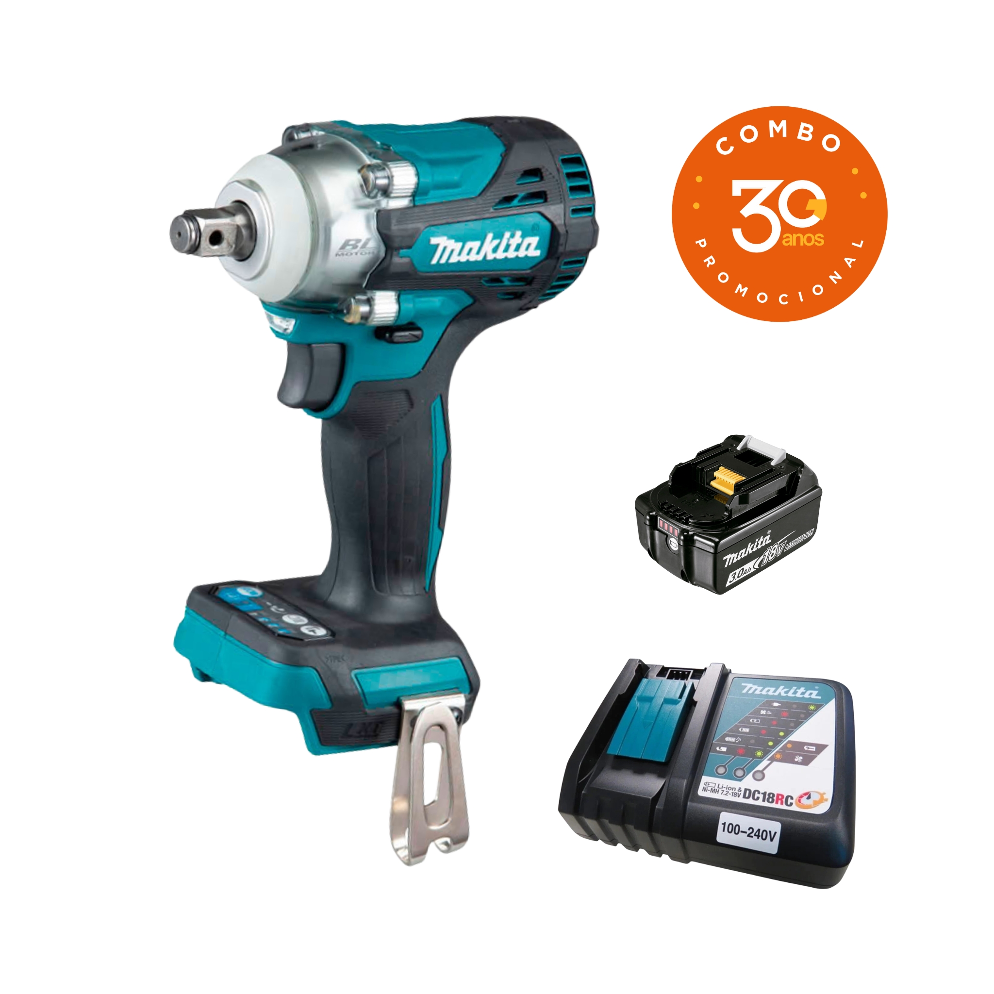Combo Chave De Impacto 18V DTW300Z G30ANOS com Bateria e Carregador Makita