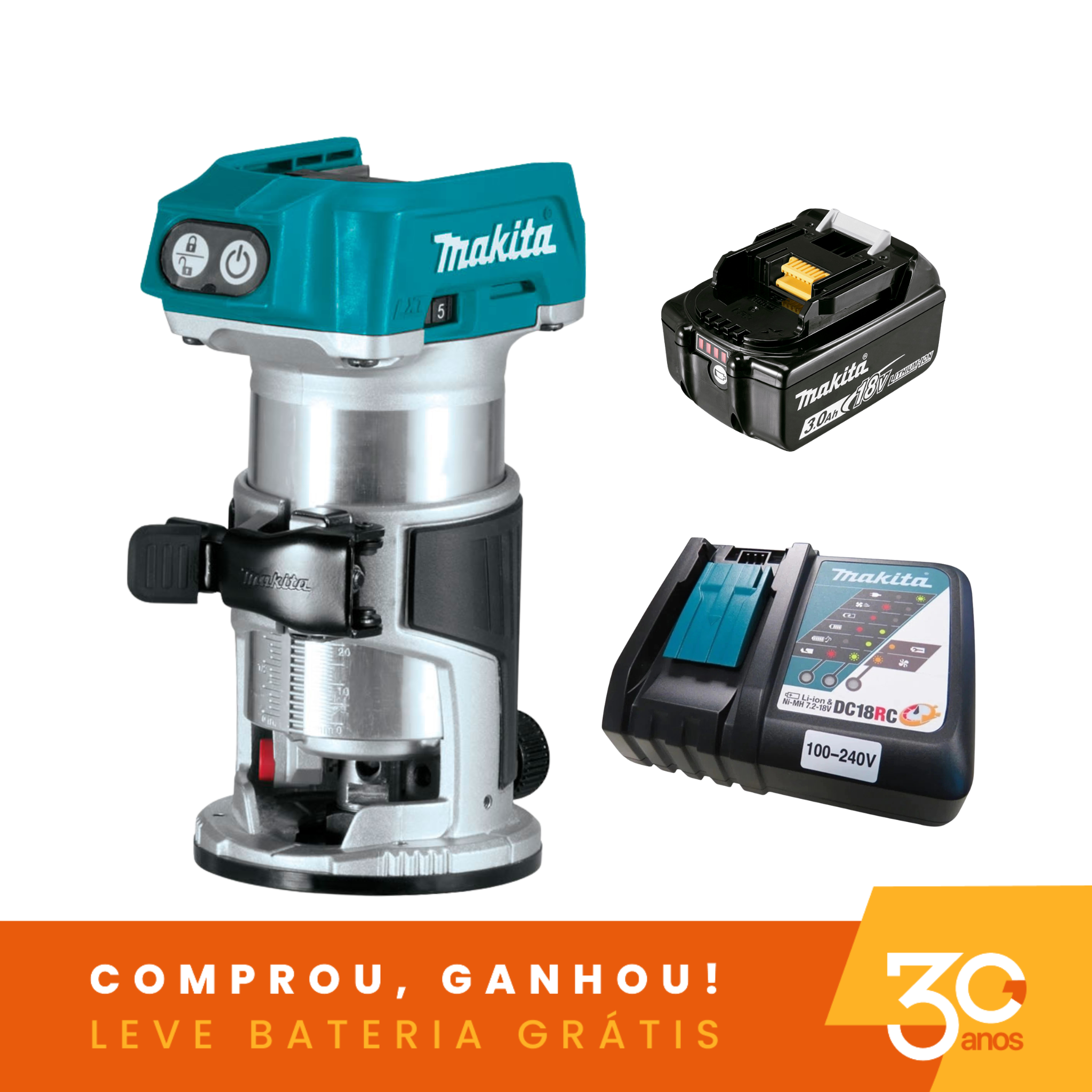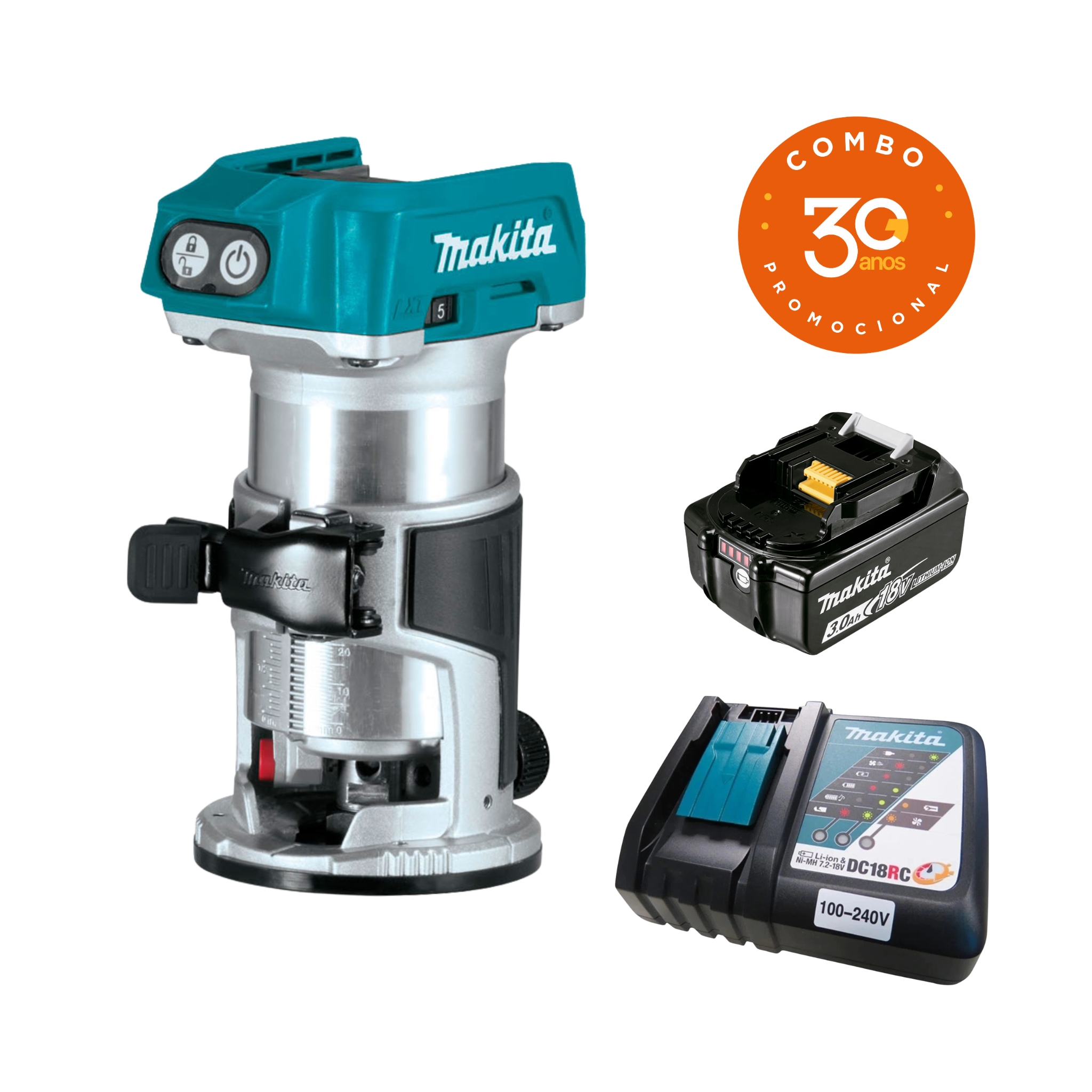 Combo Tupia 18V 8MM DRT50Z G30ANOS com Bateria e Carregador Makita