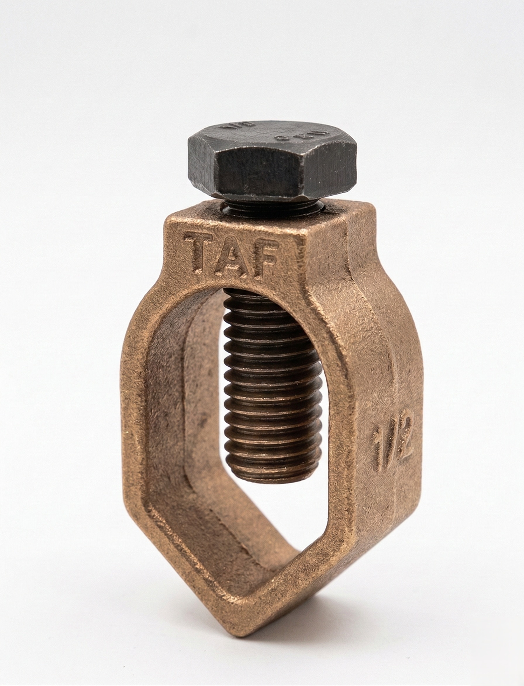 Tags: conector haste terra, grampo aterramento 1/2, conector reforçado taf, aterramento eletrico, grampo para haste de cobre, material eletrico taf, conector haste terra 1/2, 790092, segurança eletrica