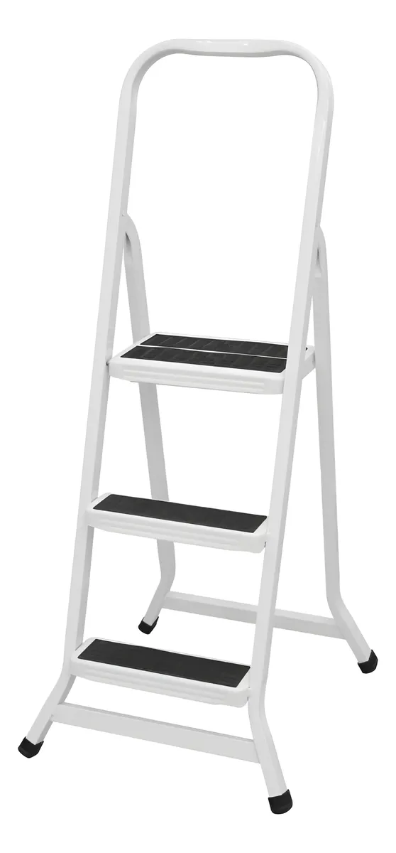 Tags: escada 3 degraus, escadinha, escada domestica, escada de aço, escada branca, escada para cozinha, escada pequena, escada com patamar, escada antiderrapante, escada dobravel, escada canal, escada resistente, escada 120kg, escada para casa, modelo E03, escada certificada