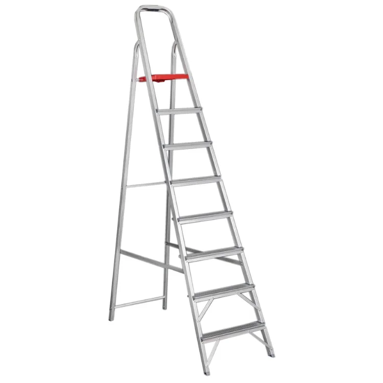 A Escada Doméstica de Alumínio REISAM de 8 Degraus é o modelo de maior alcance da linha, ideal para serviços domésticos que exigem subir mais alto, como pintura de paredes e teto, limpeza de janelas altas ou instalação de itens. Com uma impressionante altura aberta de 2,18m, ela combina a leveza do alumínio com a robustez necessária para suportar 120 KG com segurança. Certificada pelo INMETRO, esta escada proporciona a máxima estabilidade e confiança para as tarefas mais desafiadoras em casa.