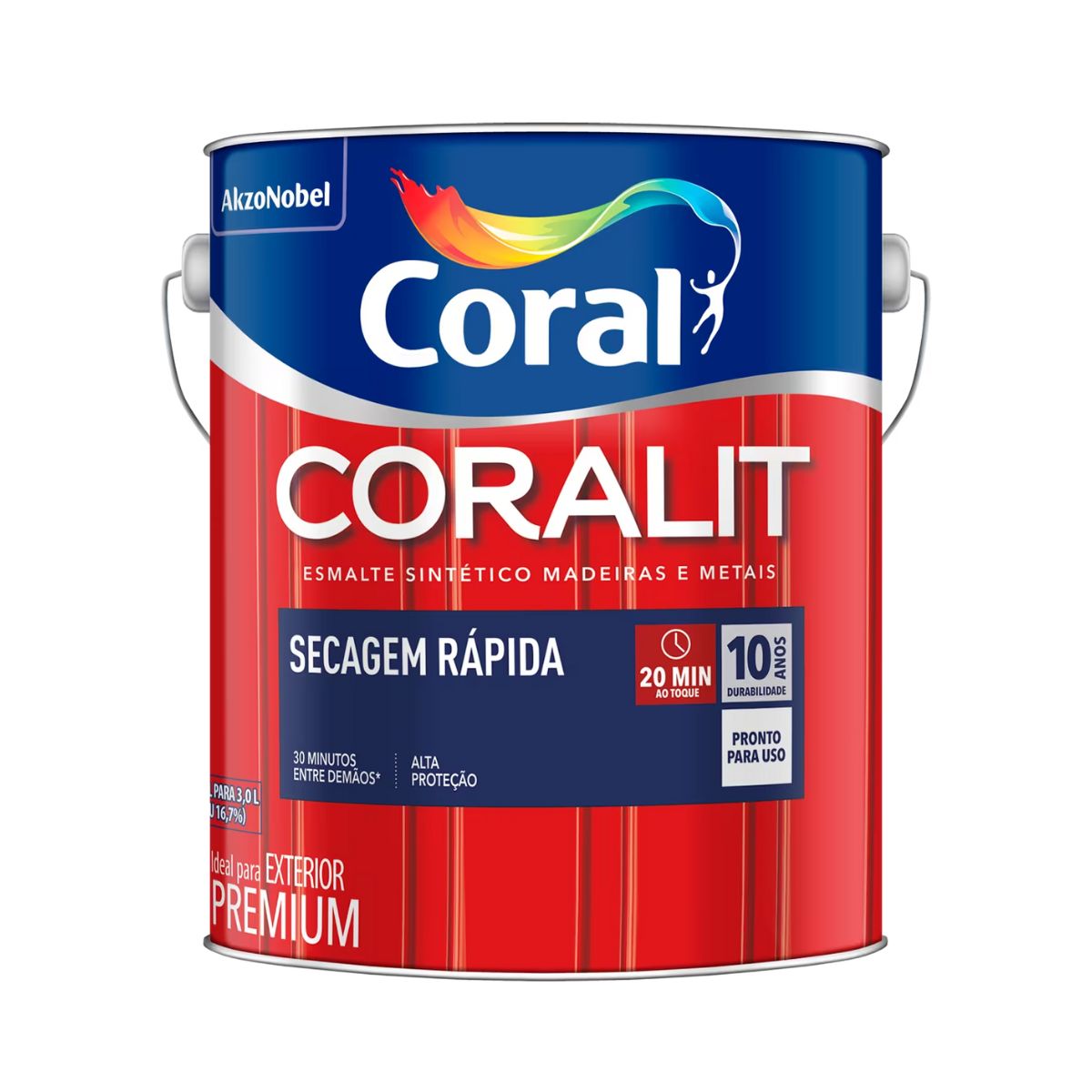 Coralit Secagem Rápida é um esmalte sintético de alta qualidade e com a secagem mais rápida da linha Coralit, 30 minutos entre demãos, o que facilita e agiliza o trabalho de pintura. Sua fórmula especial com silicone garante um excelente acabamento e alta proteção. Possui uma película brilhante que facilita a limpeza da superfície, além de oferecer ótimo rendimento e alto poder de cobertura. A durabilidade de Coralit é de 10 anos.