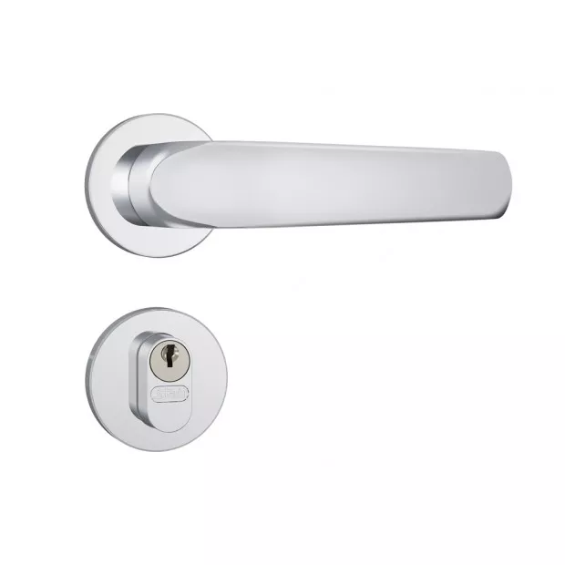 A Fechadura Stam 803/09 combina a suavidade das formas arredondadas com a resistência do acabamento cromado e aço inox. O uso de rosetas redondas confere um visual orgânico e clássico à porta, facilitando a limpeza e evitando acúmulo de sujidade em cantos vivos.