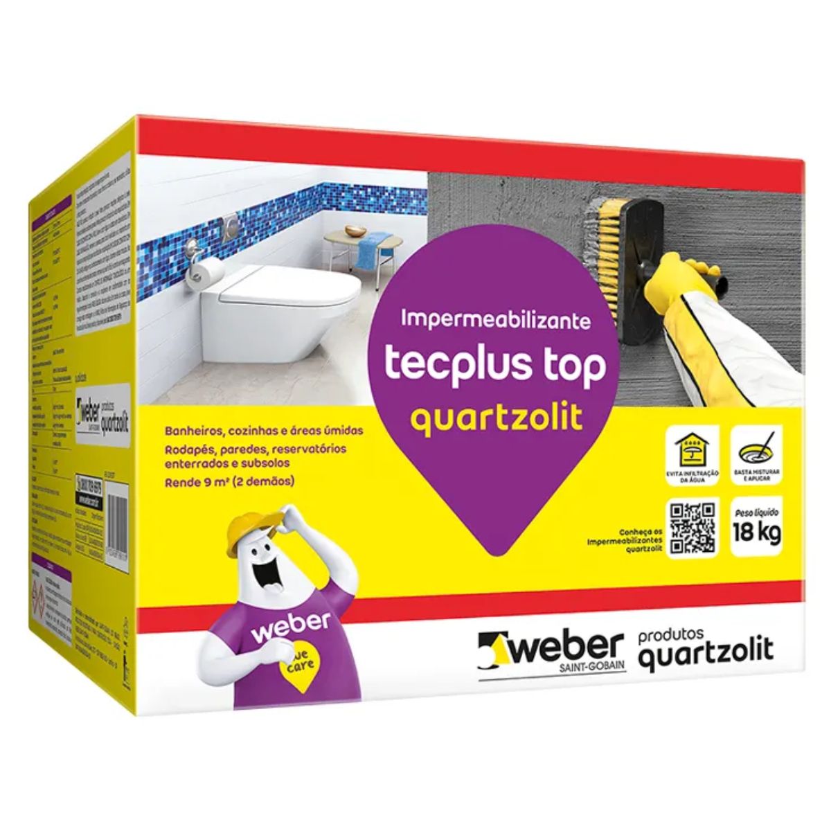 O Tecplus Top Quartzolit é uma argamassa ideal para banheiros, cozinhas, áreas de serviço, muros, rodapés, jardineiras, reservatórios enterrados, fundações e alicerces. Sua fórmula bicomponente à base de cimento polimérico garante uma impermeabilização eficaz e duradoura.
