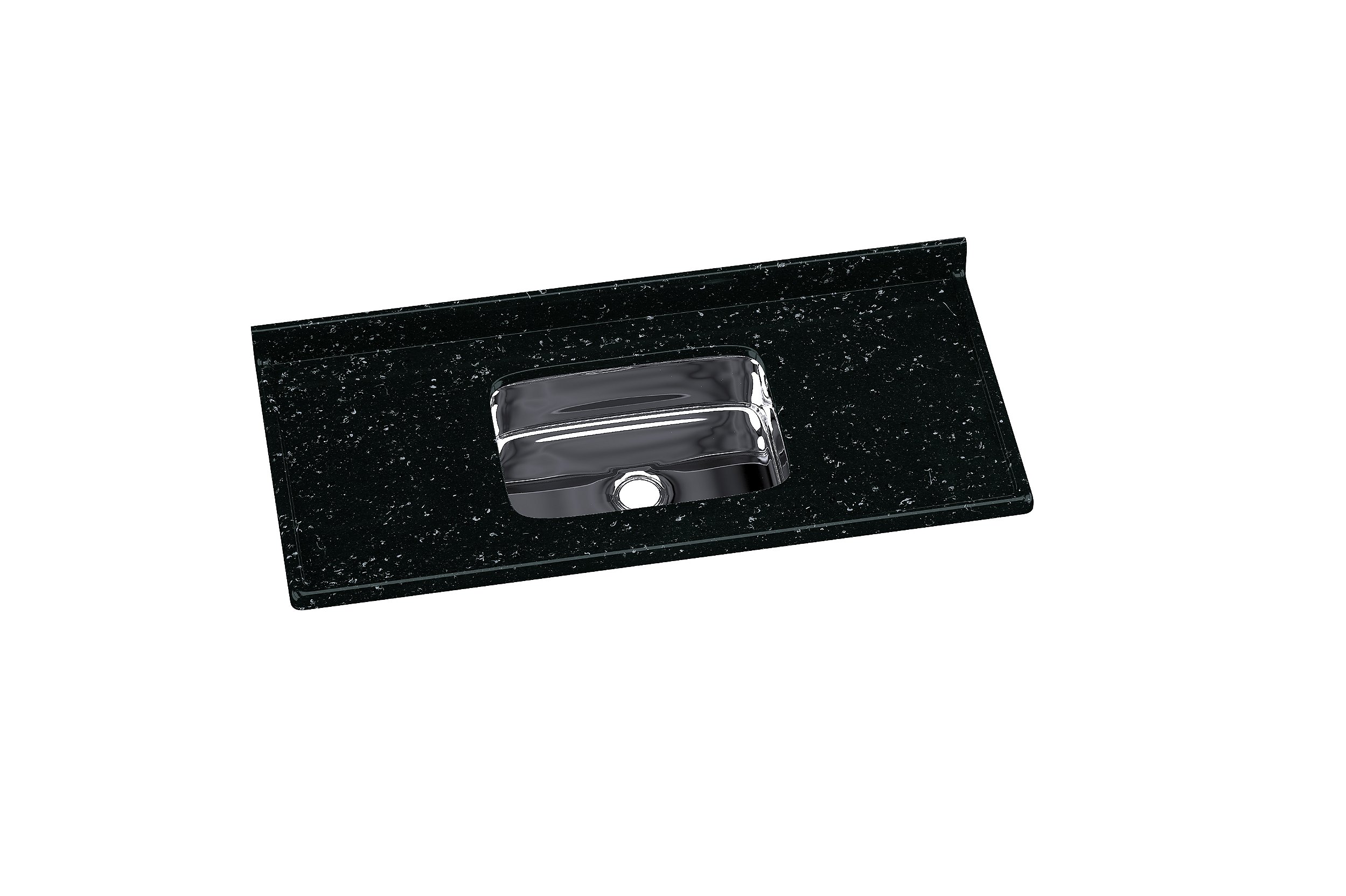 Produto em mármore sintético com espessuras reforçadas, com cobertura granitada de gel coat com brilho e resistência incomparáveis e cuba de aço Inox com 14cm de profundidade.