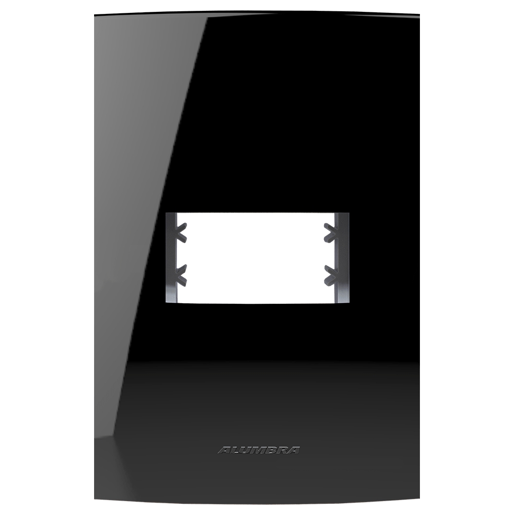 Com acabamento espelhado "Black Piano", esta placa se diferencia pelo brilho intenso e pela resistência a riscos. Sua fixação é precisa, garantindo que o interruptor ou tomada fique perfeitamente alinhado, ocultando fiações e proporcionando um visual vitrificado de alto padrão.