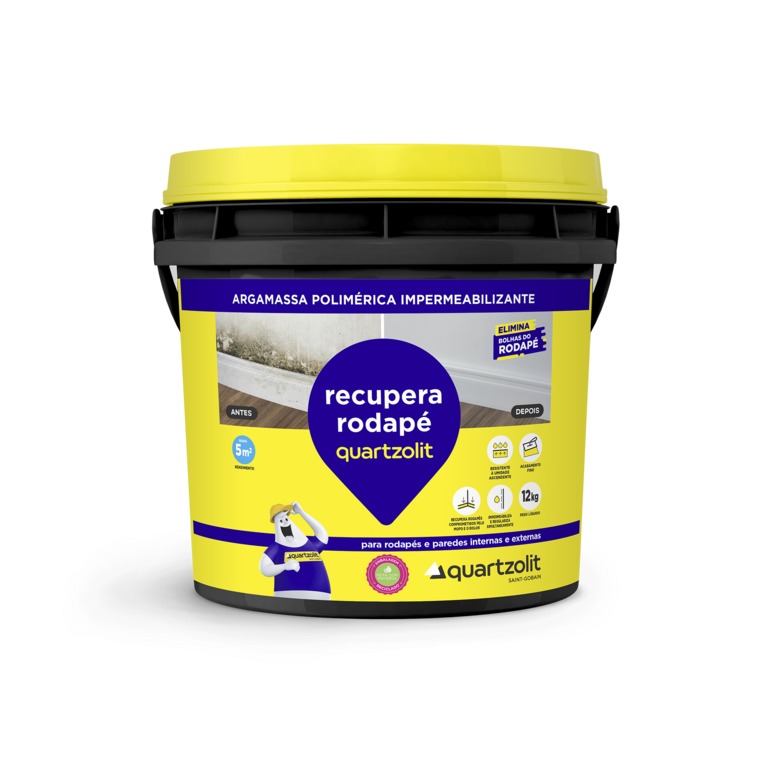 O Recupera Rodapé Quartzolit é uma argamassa polimérica indicada para impermeabilizar rodapés comprometidos pela umidade, com sinais de mofo e bolor. Deve ser aplicada diretamente sobre o reboco íntegro.