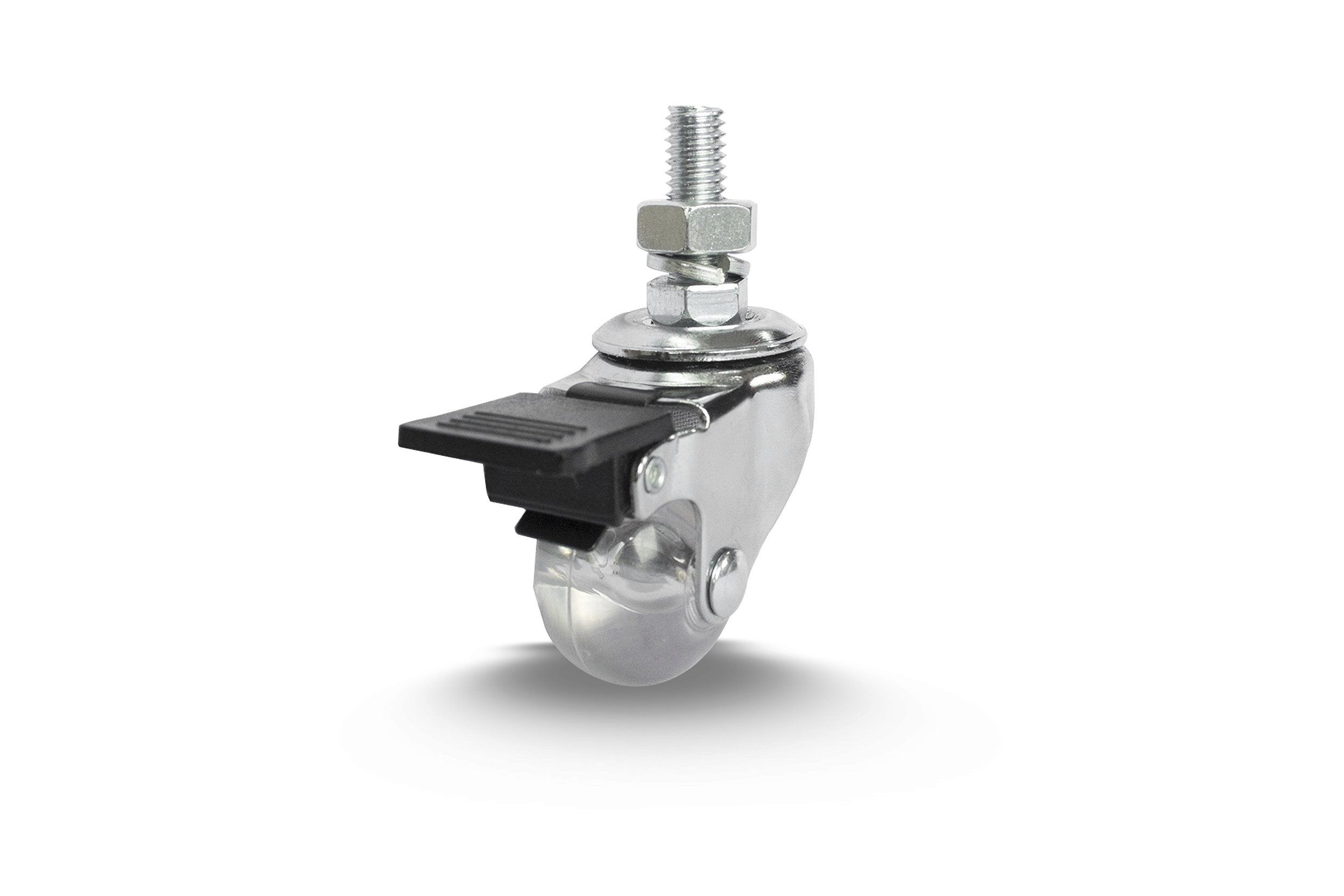 Acabamento Estético: O design moderno com roda em material cristal e garfo cromado oferece um ótimo apelo estético para aplicação em móveis de decoração e design de interiores.