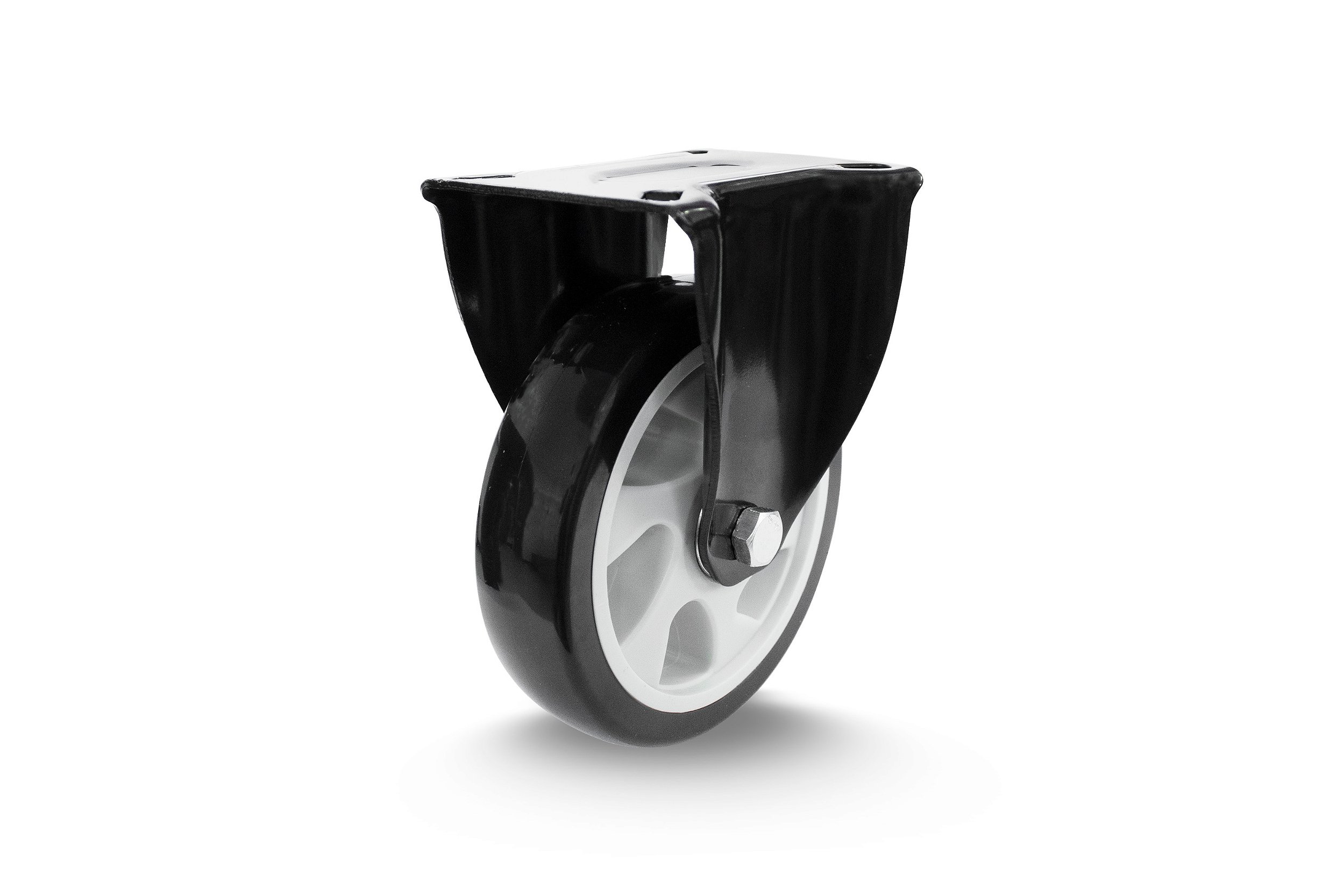 Resistência e Proteção: A roda é fabricada em poliuretano preto com núcleo de alta qualidade, oferecendo excelente resistência contra abrasão e impactos. Sua banda de rodagem protege o piso contra marcas e riscos, sendo perfeita para ambientes que exigem preservação das superfícies.